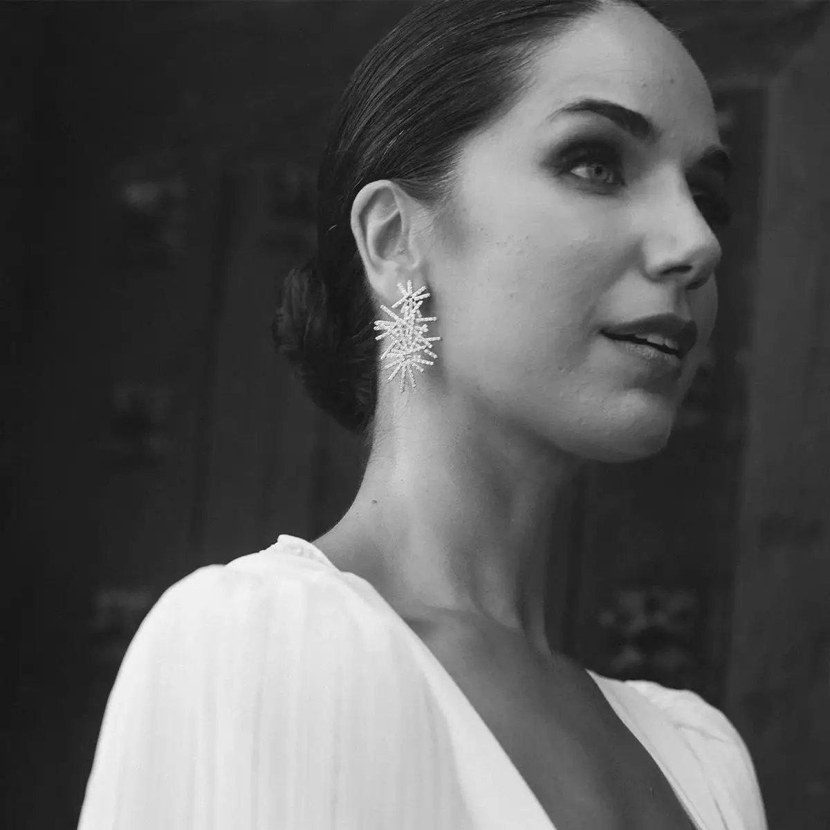Silberbasierte Ohrringe, die aus verschiedenen überlappenden Linien mit kleinen eingearbeiteten Kristallen bestehen. Ein super modernes Schnittmodell, perfekt, wenn du mit den klassischen Linien deiner besonderen Gast- oder Event-Looks brechen möchtest.