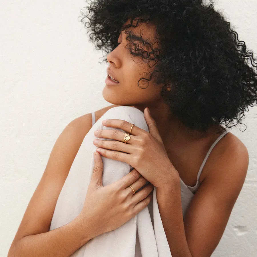 Der NINA-Hammerring ist zierlich und stilvoll. Texturiert und elegant, ist er perfekt zum Stapeln und passt zu jedem Stil.