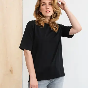 Dieses klassische schwarze T-Shirt von CAPSULE by Agne Gilyte ist eine zeitlose Ergänzung für jede Garderobe und passt mühelos zu jedem Outfit. Die längeren Ärmel bieten Vielseitigkeit, sodass Sie sie so tragen können, wie sie sind, oder für einen eleganteren Look hochkrempeln können.
