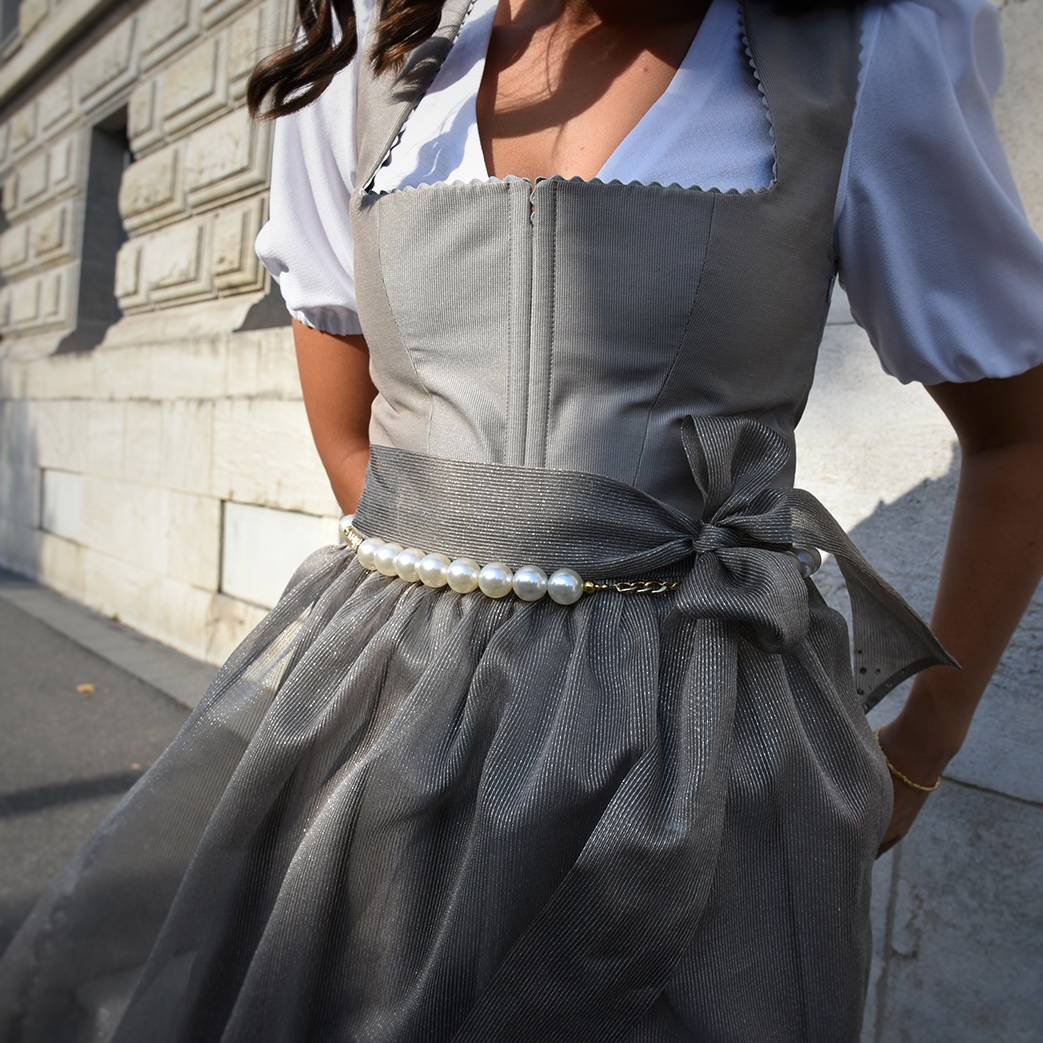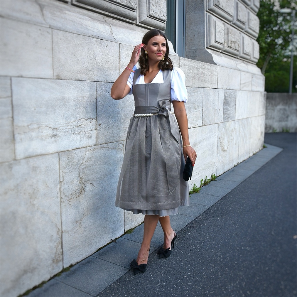 Mit edler Schlichtheit und wundervoller Haptik wirkt unsere STELLA bestechend schön. Die Kombination aus dem zart schimmernden Baumwolltaft in Silbergrau und der feinen Schürze, verleihen dem Dirndl eine besonders klassische und frische Ausstrahlung.