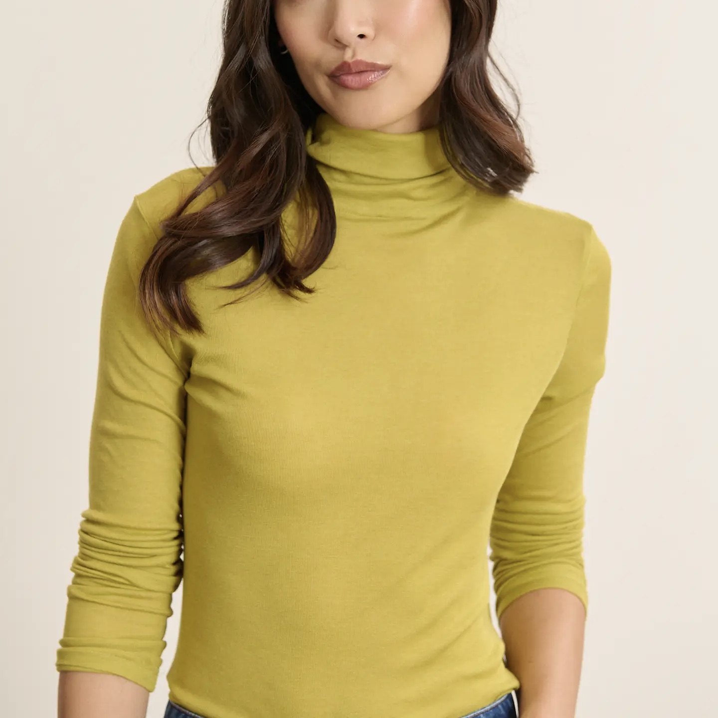 BERNE ist ein eng anliegender Rollkragenpullover in einem leuchtenden hell-olive und angenehm weich und wärmend auf der Haut durch die Wollmischung. Mit seinem zurückhaltendendem und elegantem Stehkragen eignet er sich perfekt für Lagenlooks.