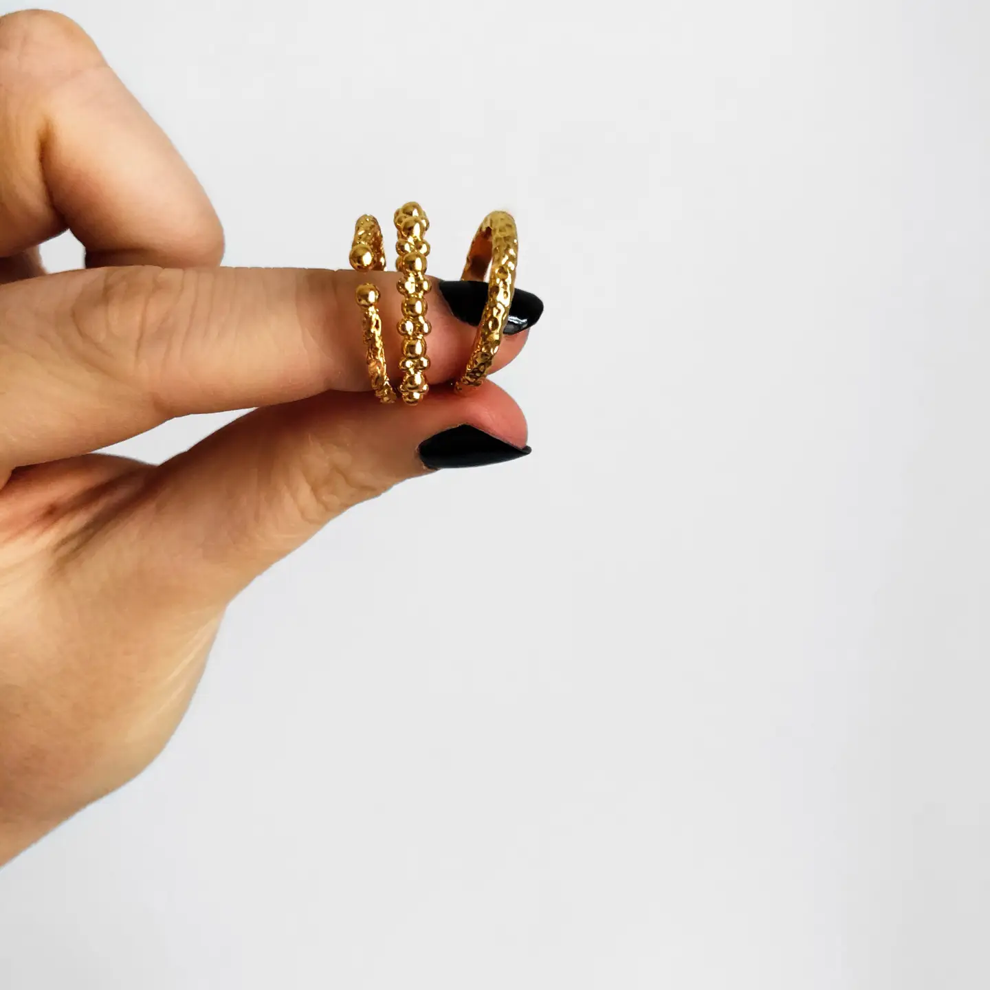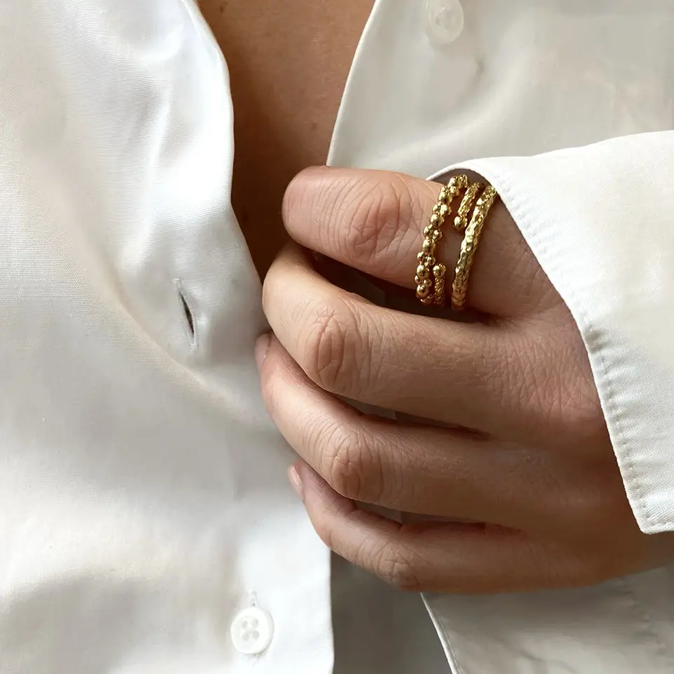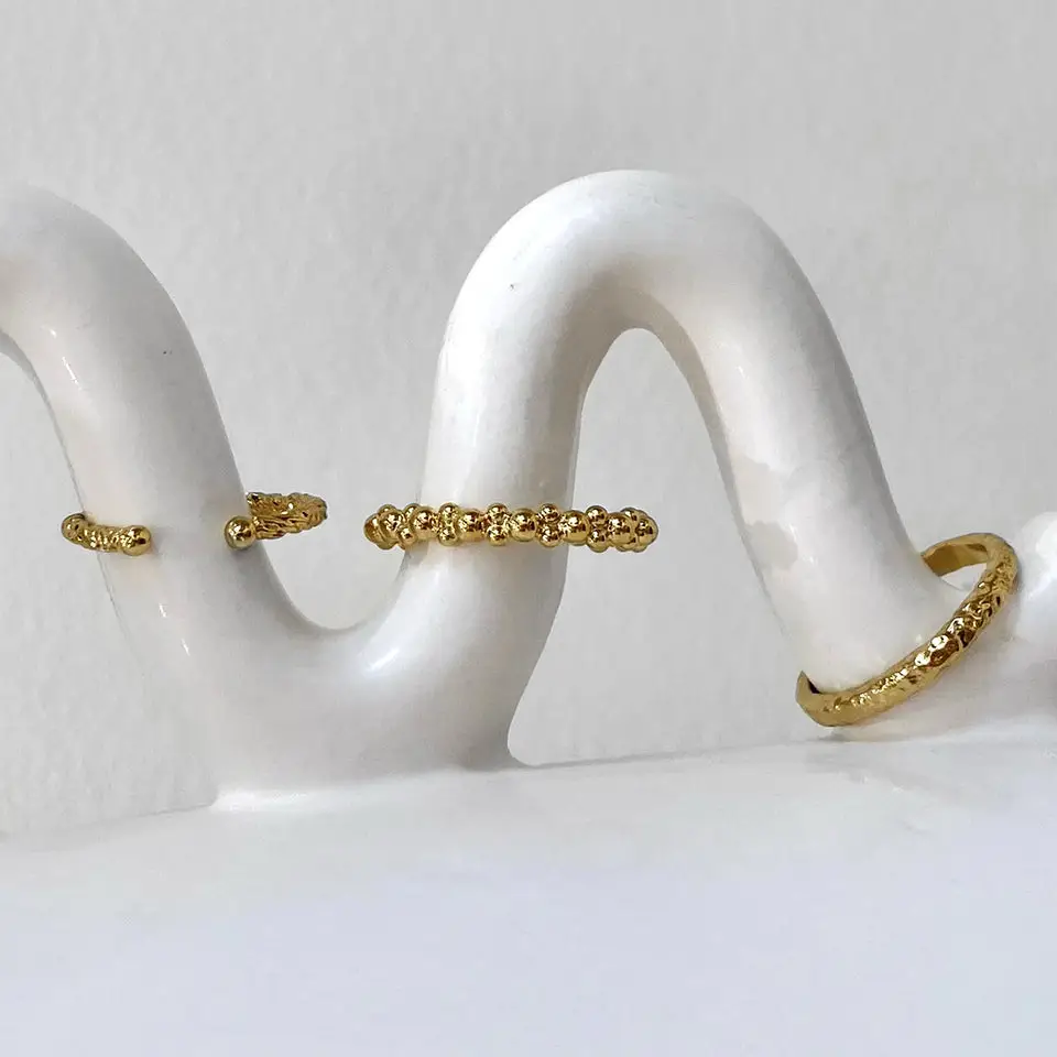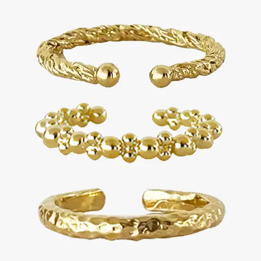 Wunderschöne 3er-Set Ring-Kombination in gold aus einem Perlenring, einem indischem Ring und einem Kordelring. Perfekt zu Tragen als ein Statement Ring oder jeder einzeln für sich mit zarter Wirkung.