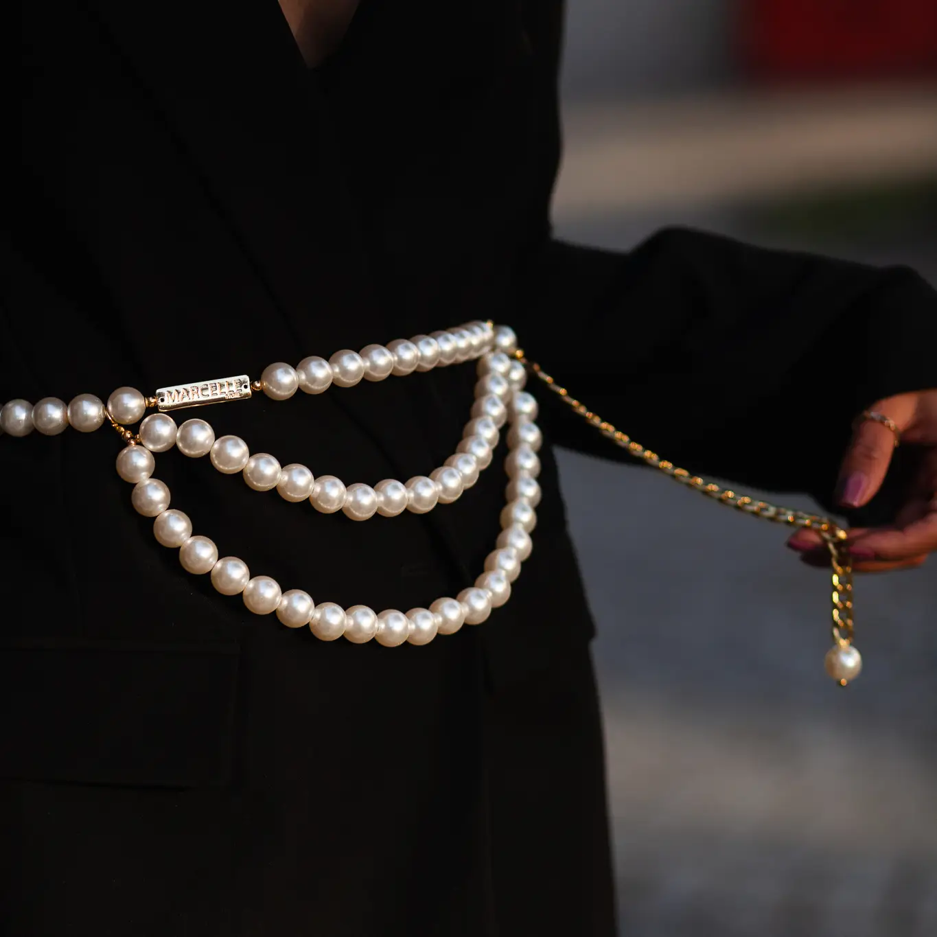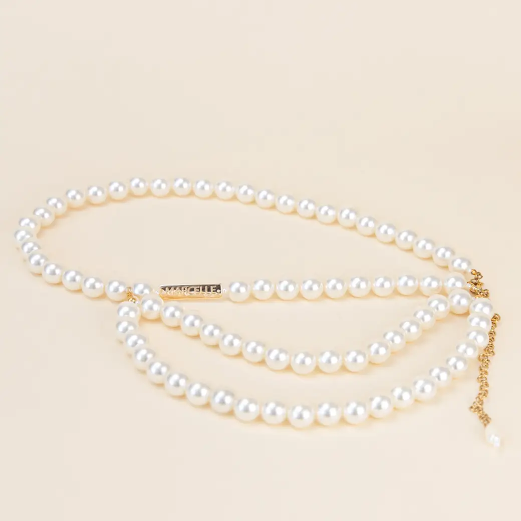 Einzigartig schöner und besonderer Statement-Gürtel, der aus Maxiperlen in Portugal handgefertigt wird.