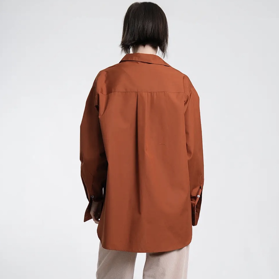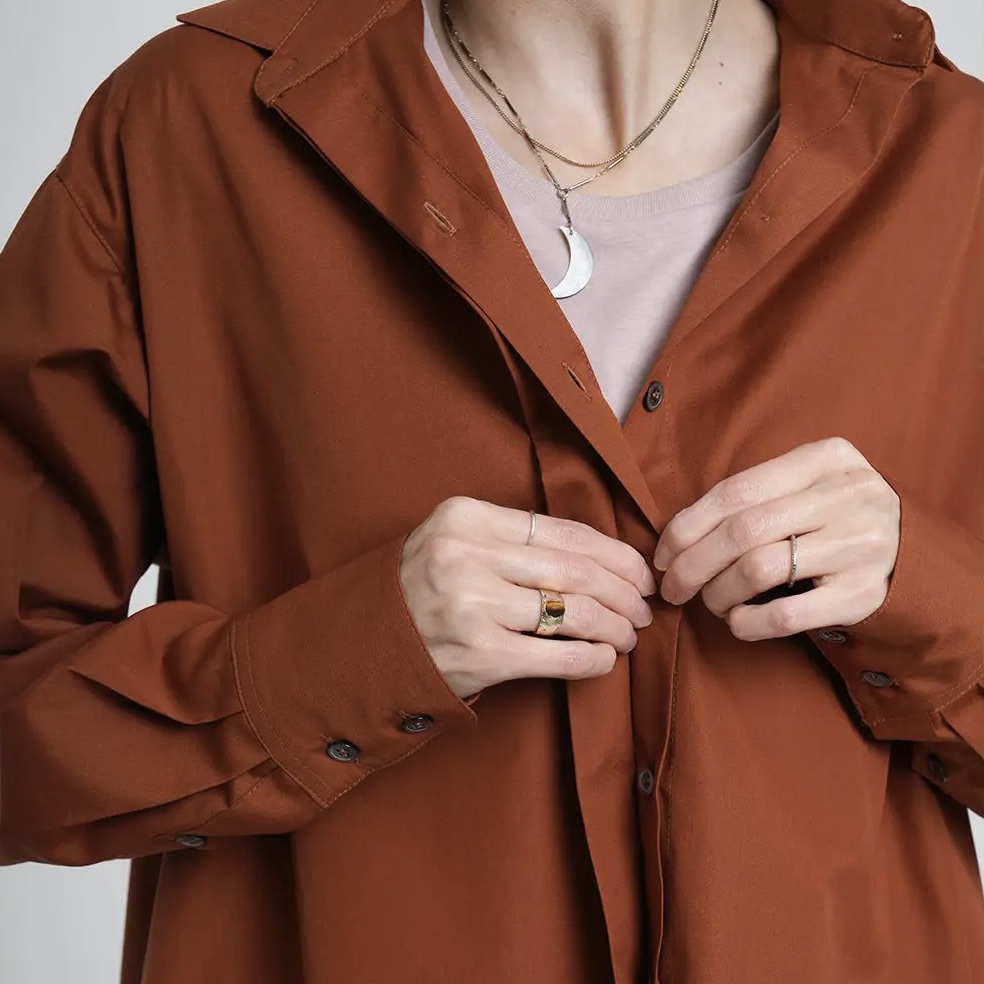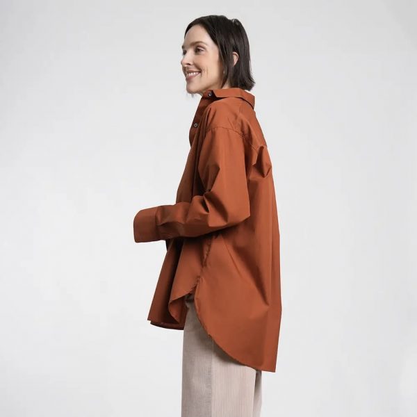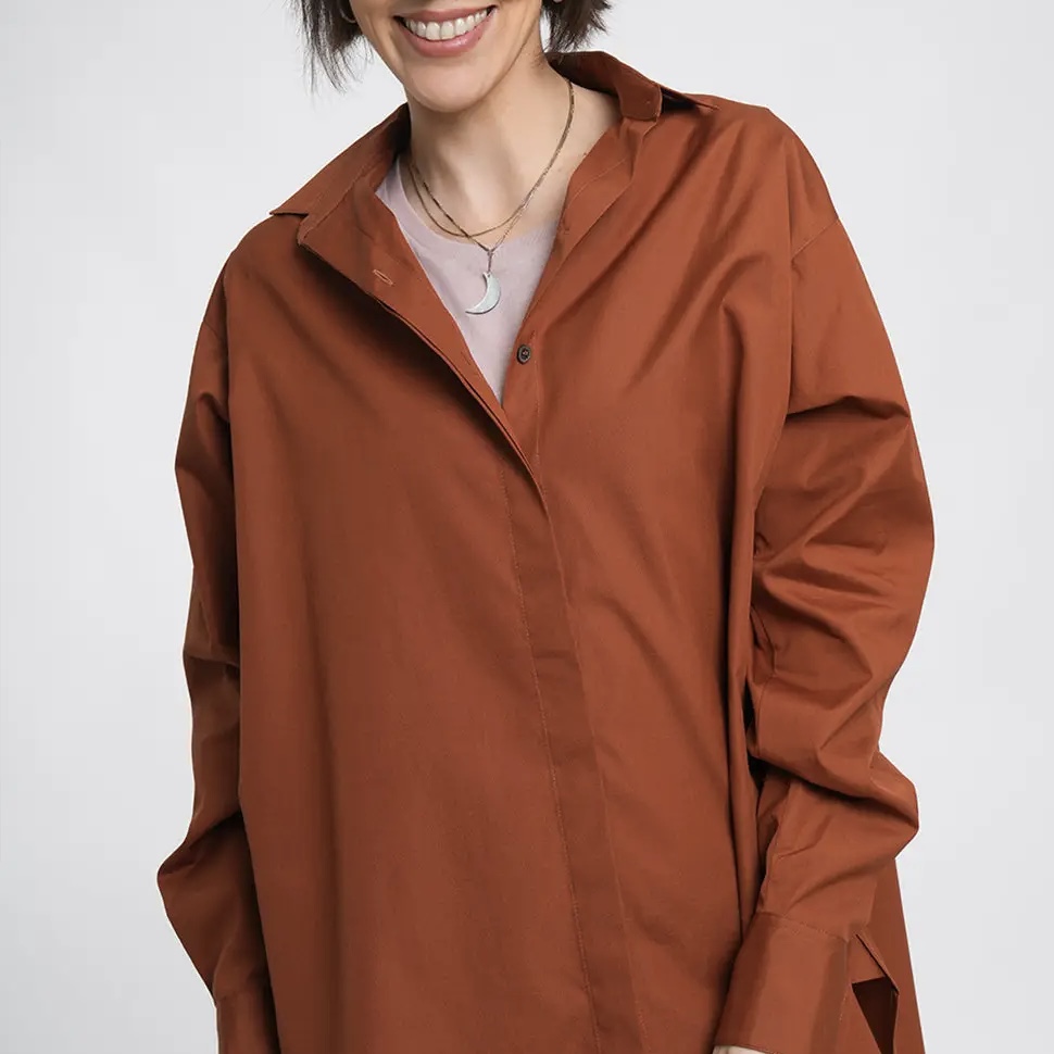 CARMON in rostfarben ist ein modernes Oversize Hemd aus Poplin-Baumwolle und kreiert einen lässig eleganten Stil, egal ob im Büro oder beim Ausgehen.