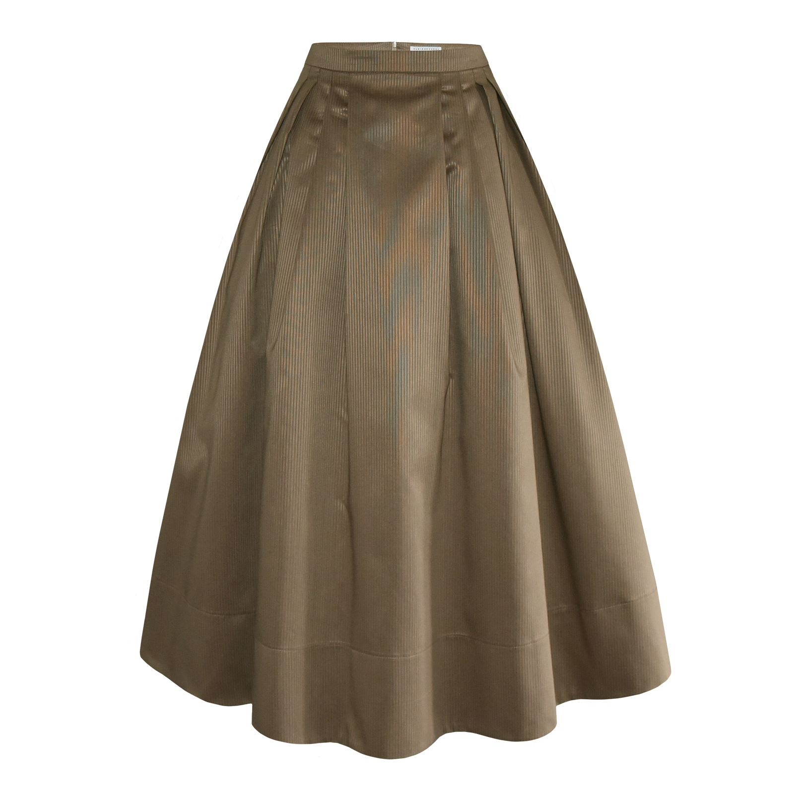 Die zeitlos schöne Wirkung des Rocks wird durch das zarte Streifen – Muster komplettiert.