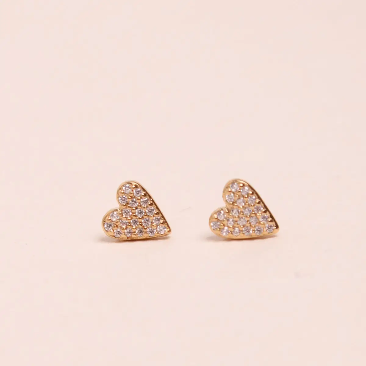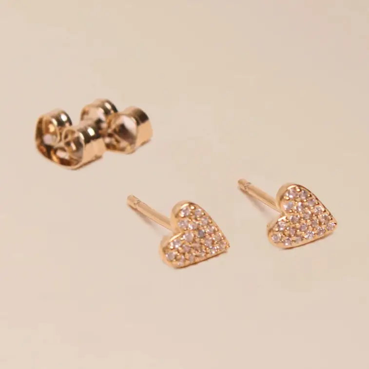 Einzigartig schöne Ohrstecker in Herzform mit Zirkonia-Steinen besetzt.